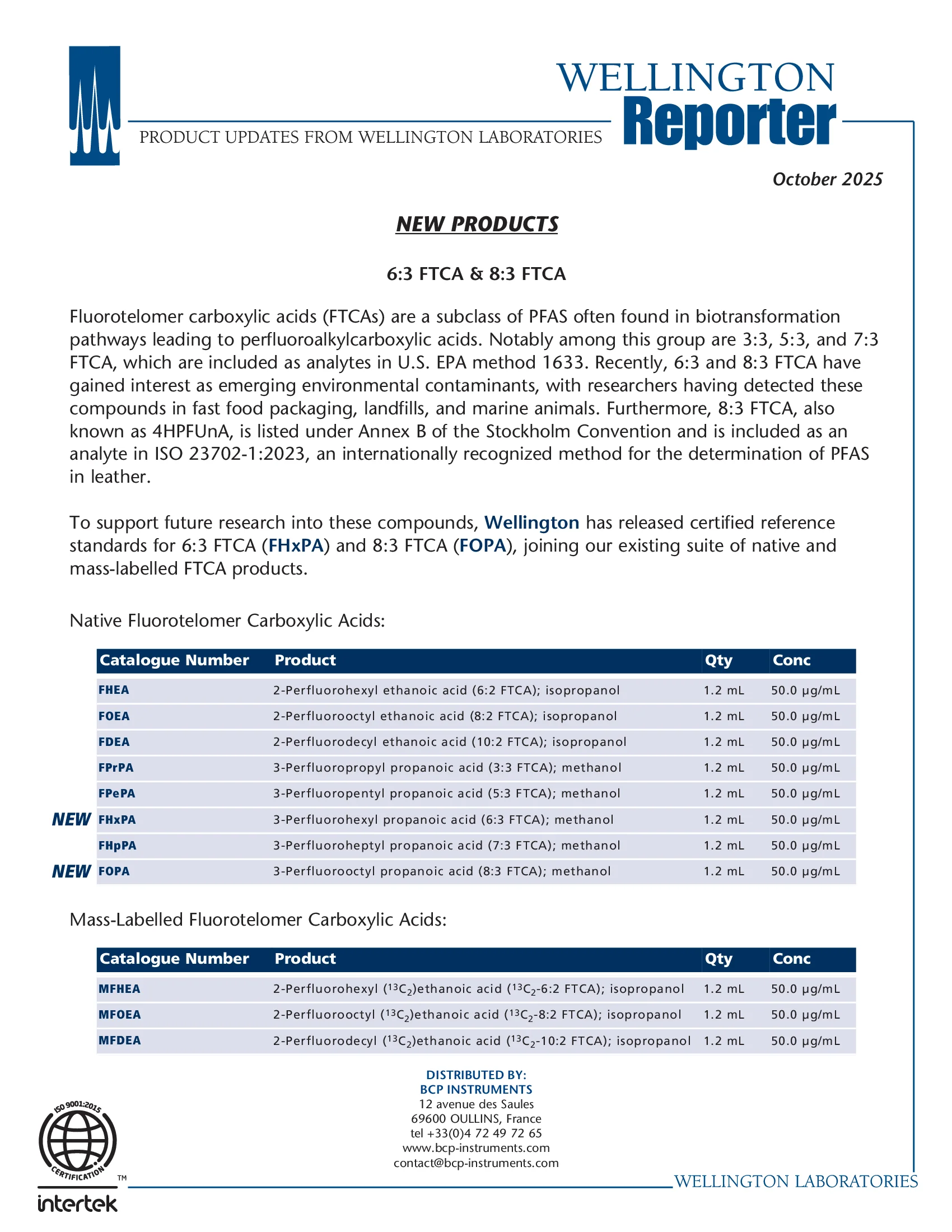 Accueil | Etalons analytiques Wellington | PFAS | Fluorotélomères d’acides carboxyliques (FTCAs)