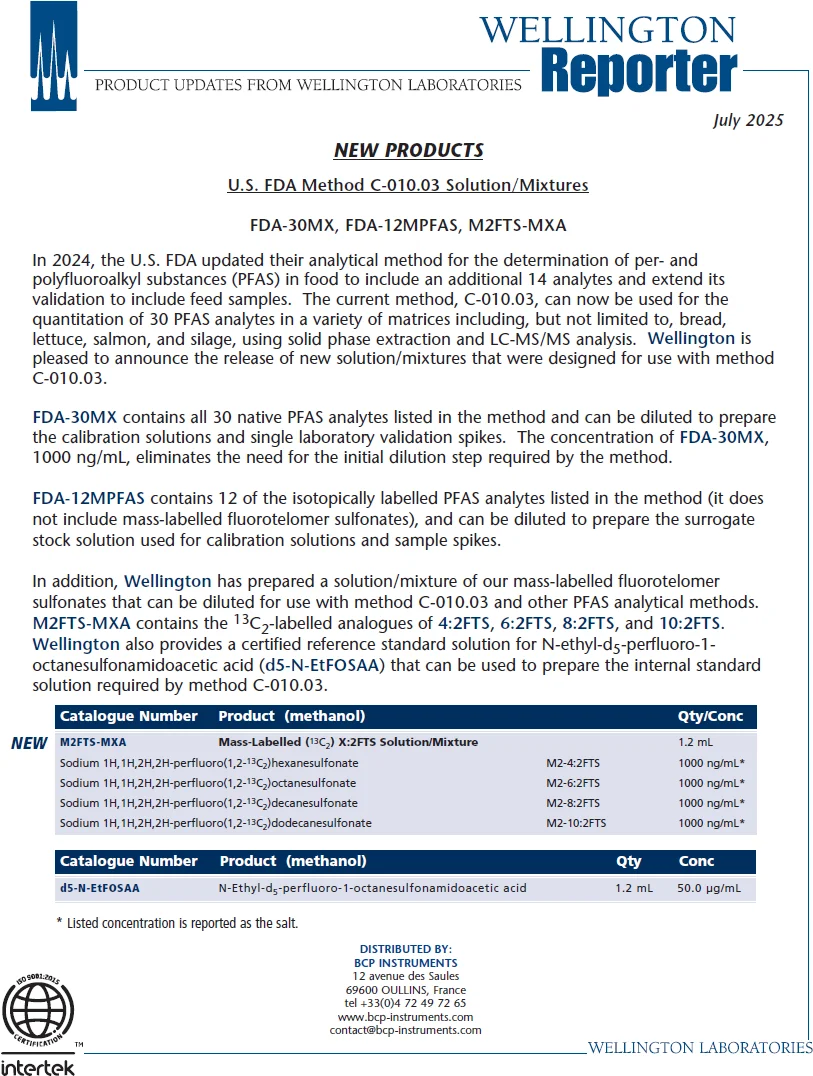 Trust BCP Instruments for all your analytical standards needs and benefit from the excellence of Wellington Laboratories products in France and Belgium.